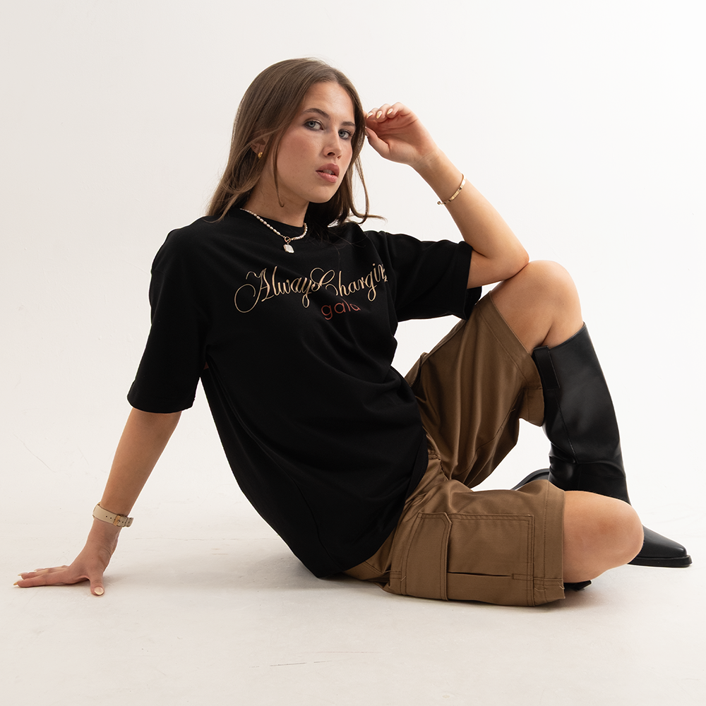 for a loose, oversized fit, stick to your usual size. For a more regular fit, go one size down.