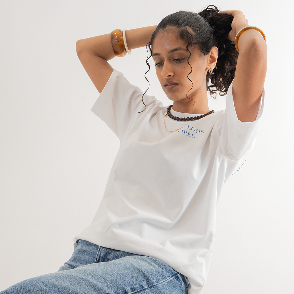 for a loose, oversized fit, stick to your usual size. For a more regular fit, go one size down.