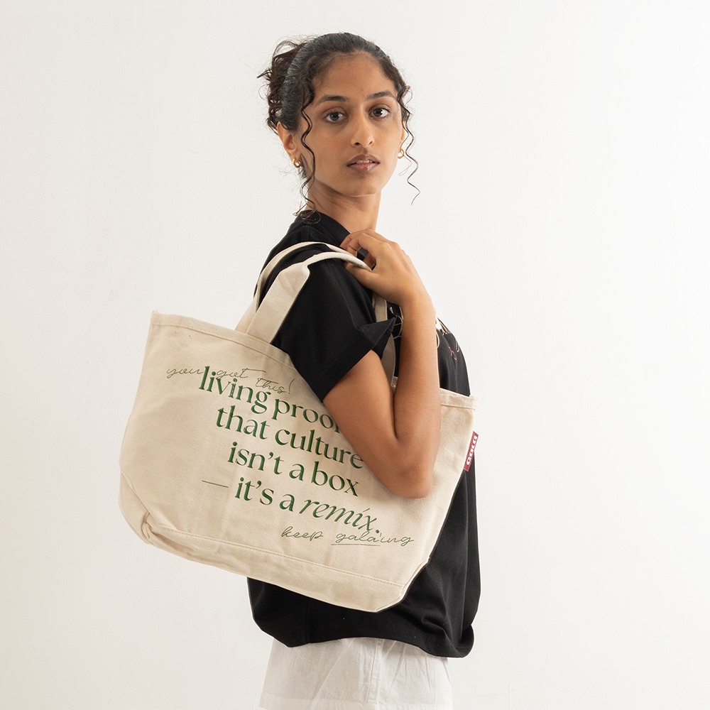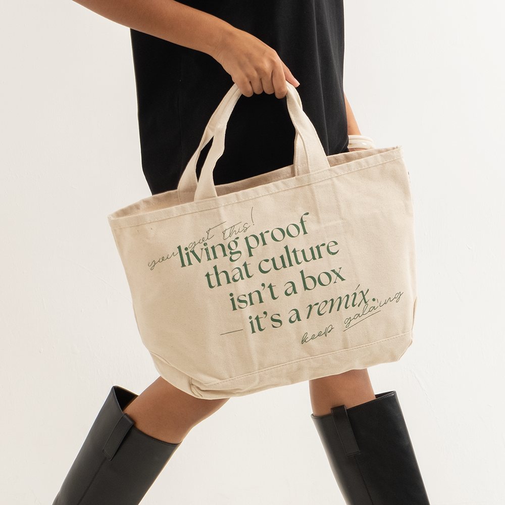 Culture’s not a box—it’s a remix. A sturdy everyday bag with room for all your stuff and a little attitude to go with it.